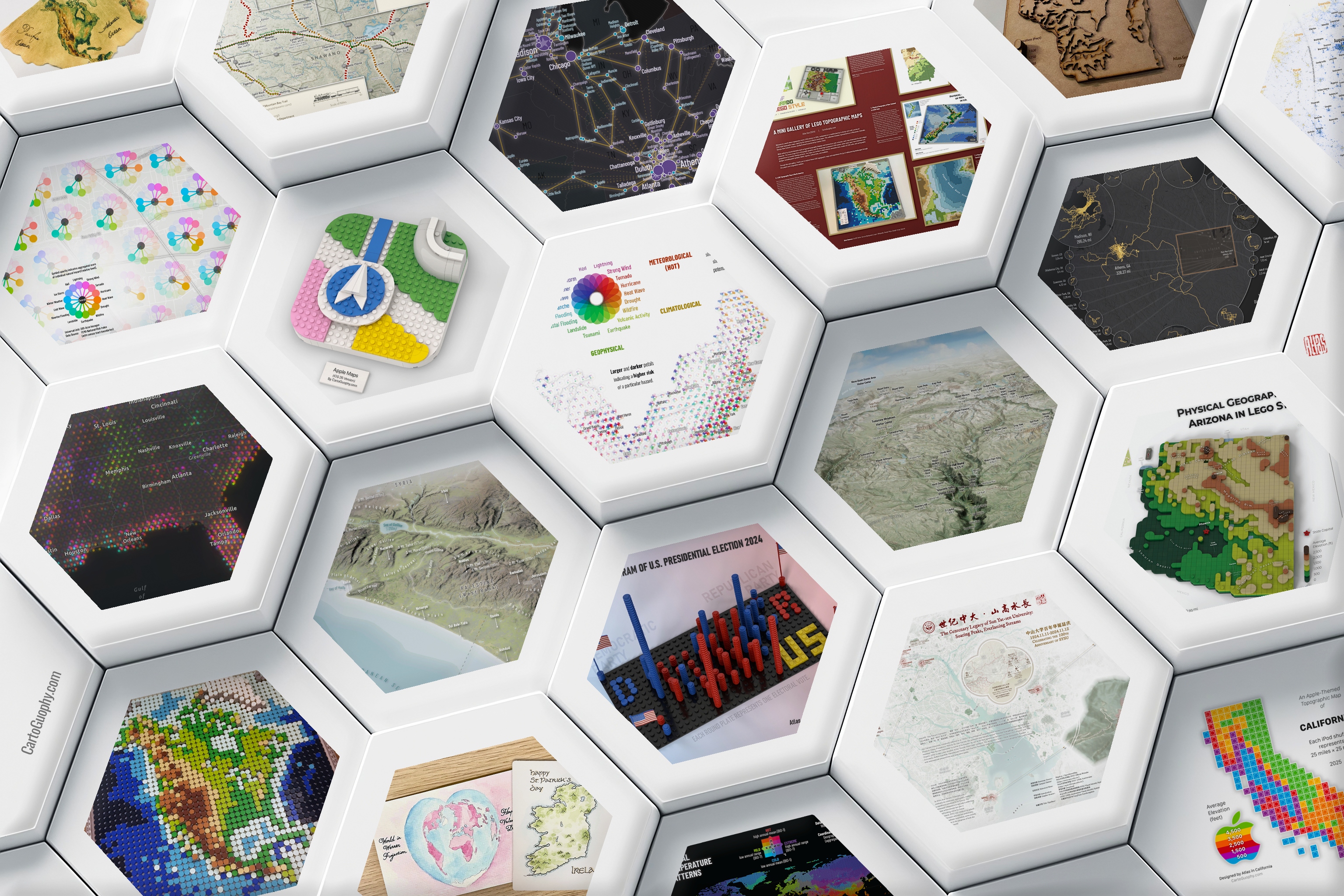 The mosaic image above showcases my recently created maps.