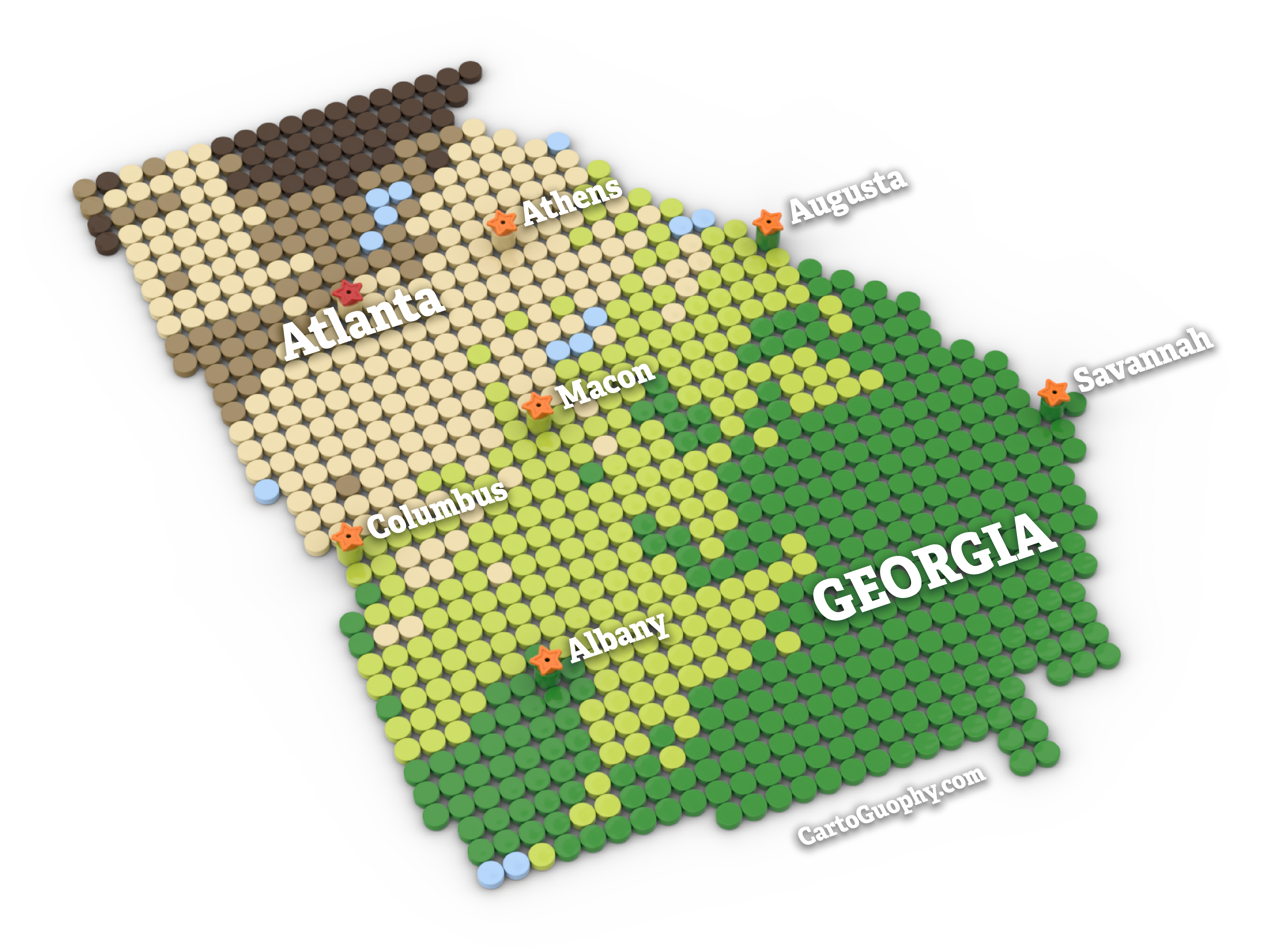 This is an early-stage exploration of LEGO mapping project with minimalism design. I would dedicate this LEGO style map to my "American hometown", GEORGIA.