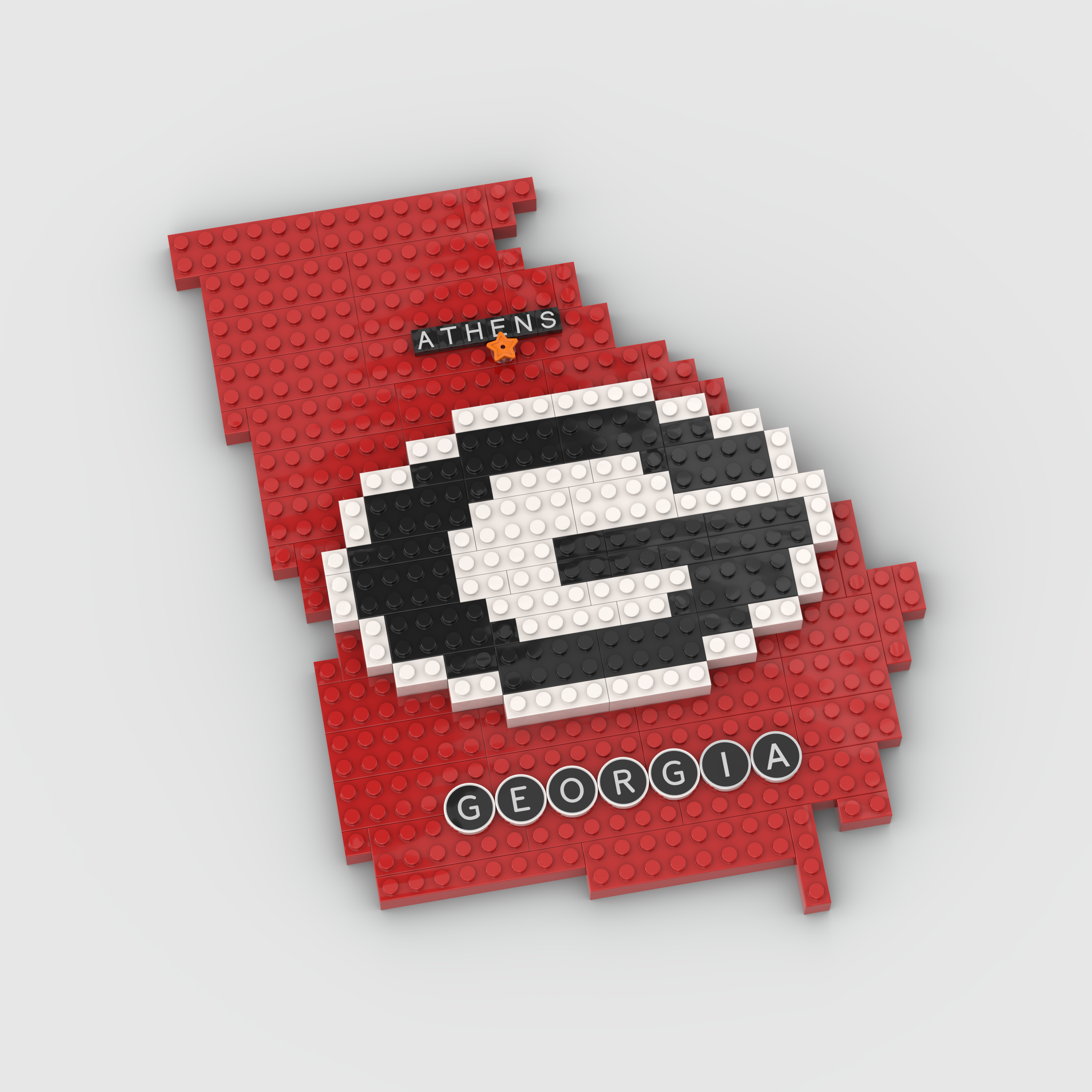 UGA, which is cleverly integrated into the map design using LEGO bricks.